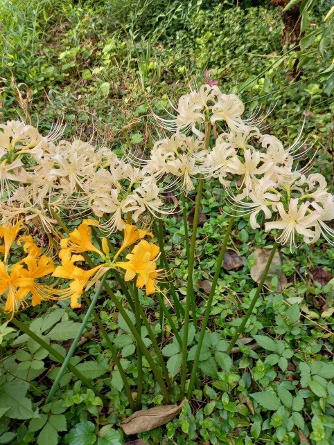 赤は、良く見かける彼岸花ですが、白や黄色って珍しく