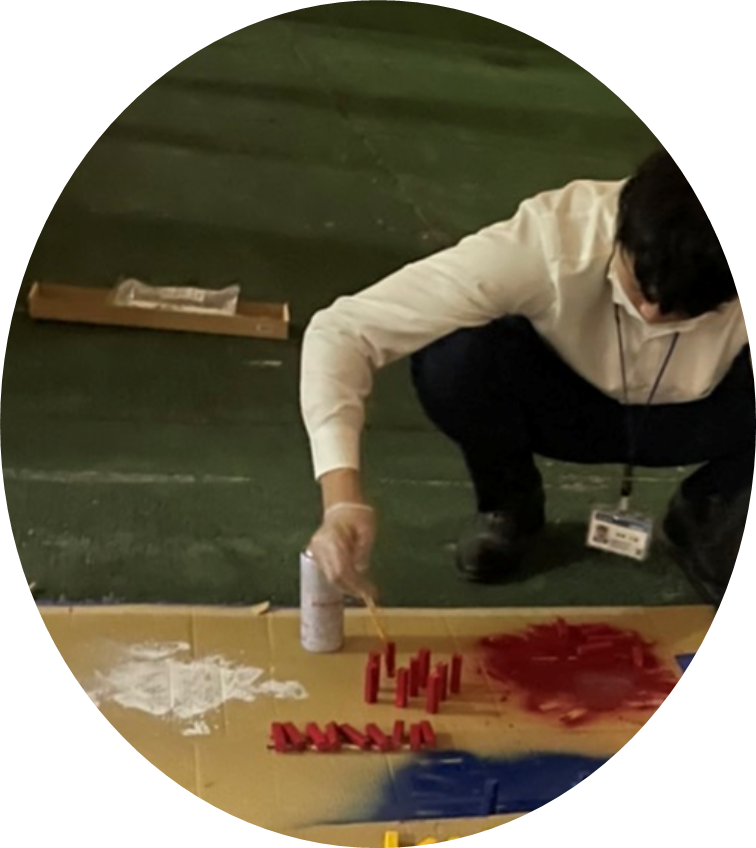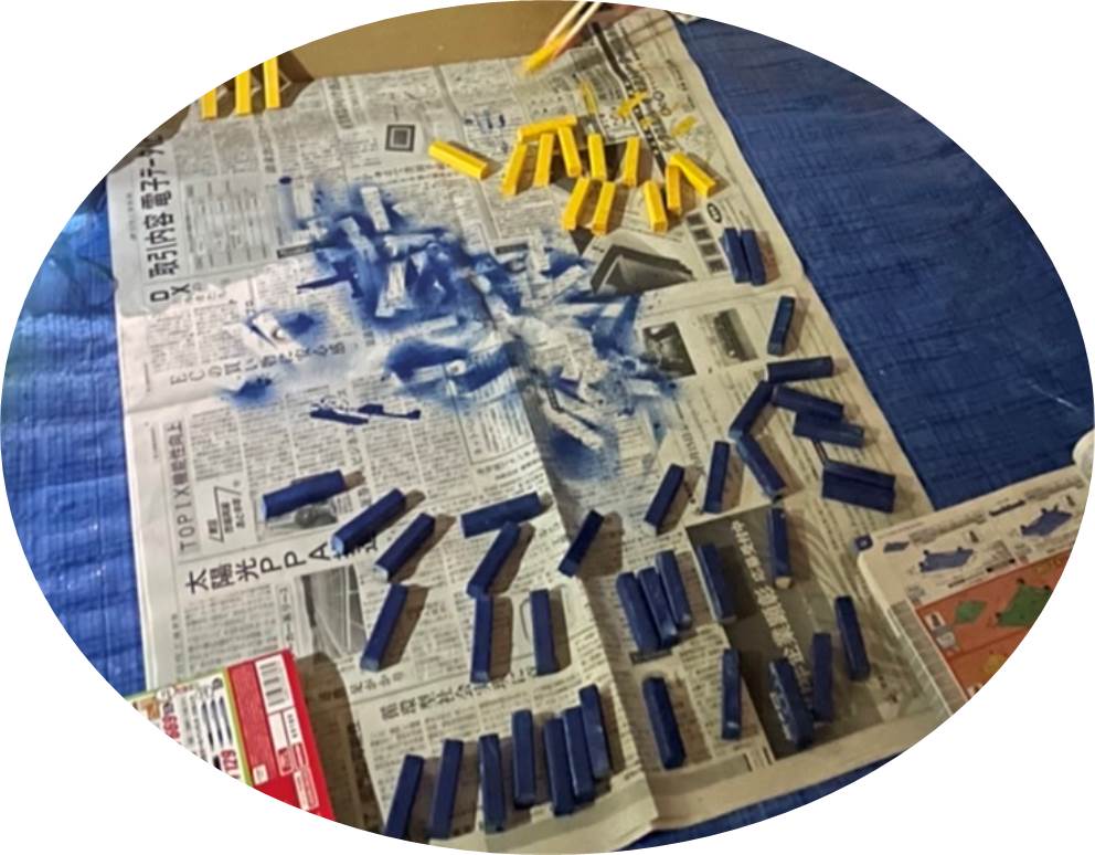 ラッカースプレーで、1片1片、塗装をしていきました。