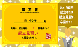 更に、プレーをすると1日に1回スタンプが押されるスタンプラリーや、起立回数に応じて発行される認定書など、様々なコンテンツもご準備しております。
