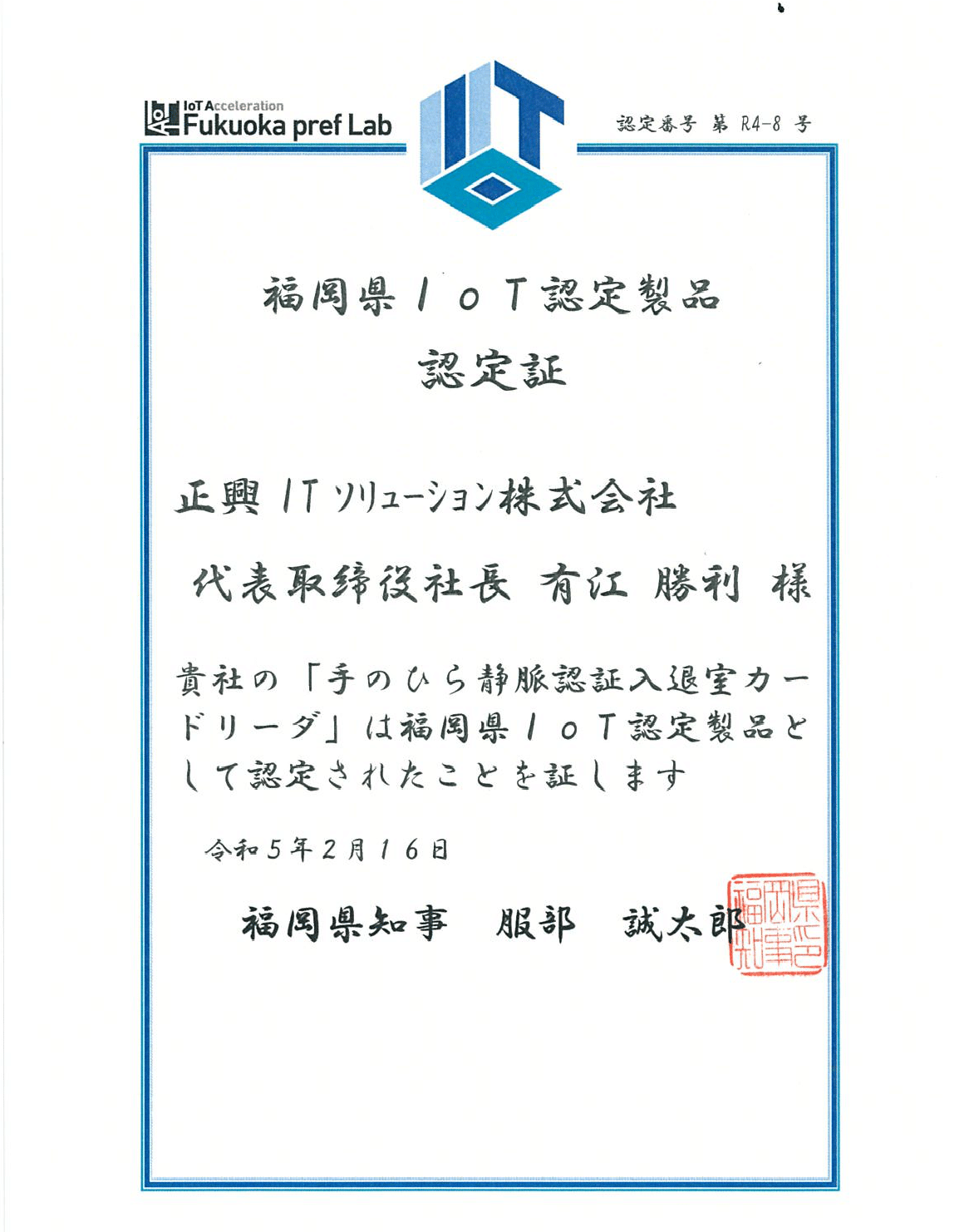 福岡県IoT製品に認定されました。