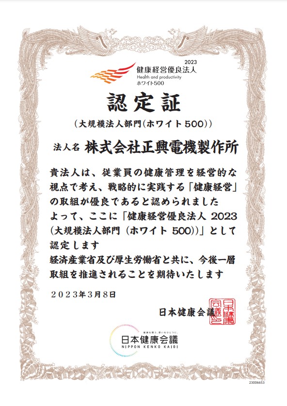 2023年3月8日、「健康経営優良法人(大規模法人部門)」の上位500法人である